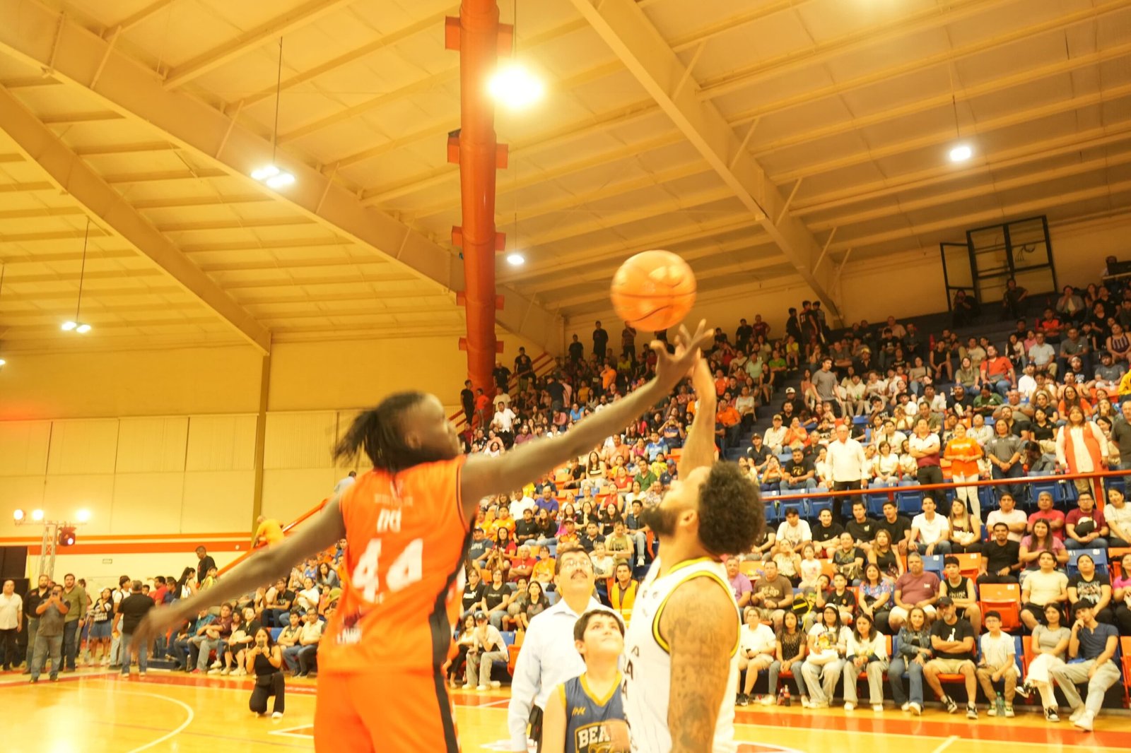 Para ello, el rector invitó a uno de los niños asistentes a realizar el saque de balón en el centro de la duela, además de acompañarlo en la tradicional fotografía con los capitanes de los equipos.