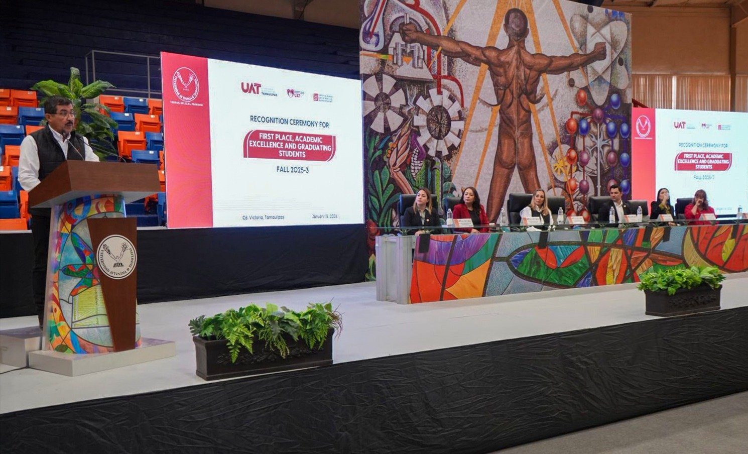 El rector de la Universidad Autónoma de Tamaulipas, Dámaso Anaya Alvarado, presidió la Ceremonia de Entrega de Reconocimientos a Estudiantes de Primer Lugar, Excelencia, Egresados y Fidelidad, correspondiente al periodo Otoño 2025-3, del Centro de Idiomas para la Niñez y la Adolescencia (CEINA).