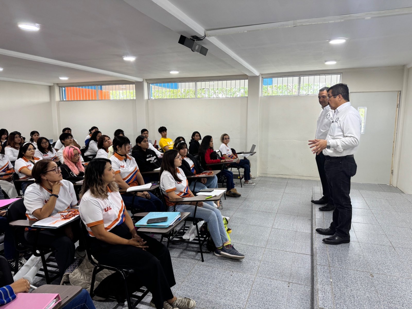 Al inicio de la jornada, denominada “Un día con tu rector”, se reunió con docentes en el Centro de Excelencia, y visitó los salones de las nuevas carreras de Psicología y Autotransporte de Carga que se han puesto en marcha en este ciclo escolar.
