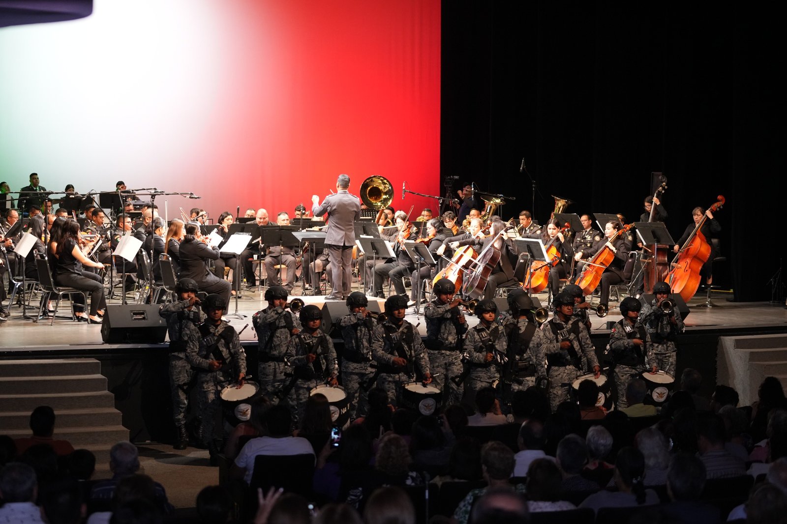 Más adelante, la OSUAT se integró junto a la Orquesta de la Guardia Nacional y la banda de guerra, en una fusión excepcional de coordinación y armonía. Finalmente, la maestra Inés Rodríguez Pedraza asumió la dirección de ambas orquestas para cerrar la velada con el Huapango de José Pablo Moncayo, obra emblemática que refleja la alegría, el ritmo y el orgullo del pueblo mexicano.