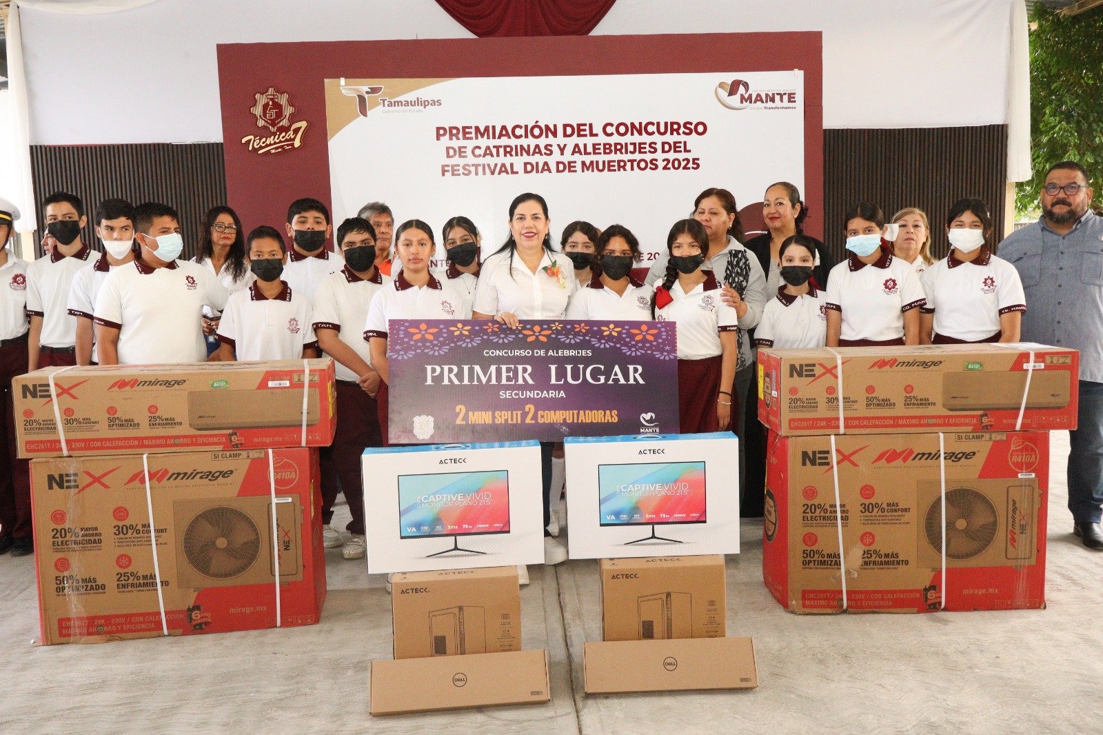 Las escuelas primarias Alberto Carrera Torres, Niños Héroes y las secundarias: Técnica No 7 Dr. Pedro Martinez Noriega y la Secundaria General No 2, Jaime Torres Bodet recibieron esta mañana los premios por su participación en las actividades relativas al Día de Muertos, en donde mostraron creatividad y esfuerzo colectivo.