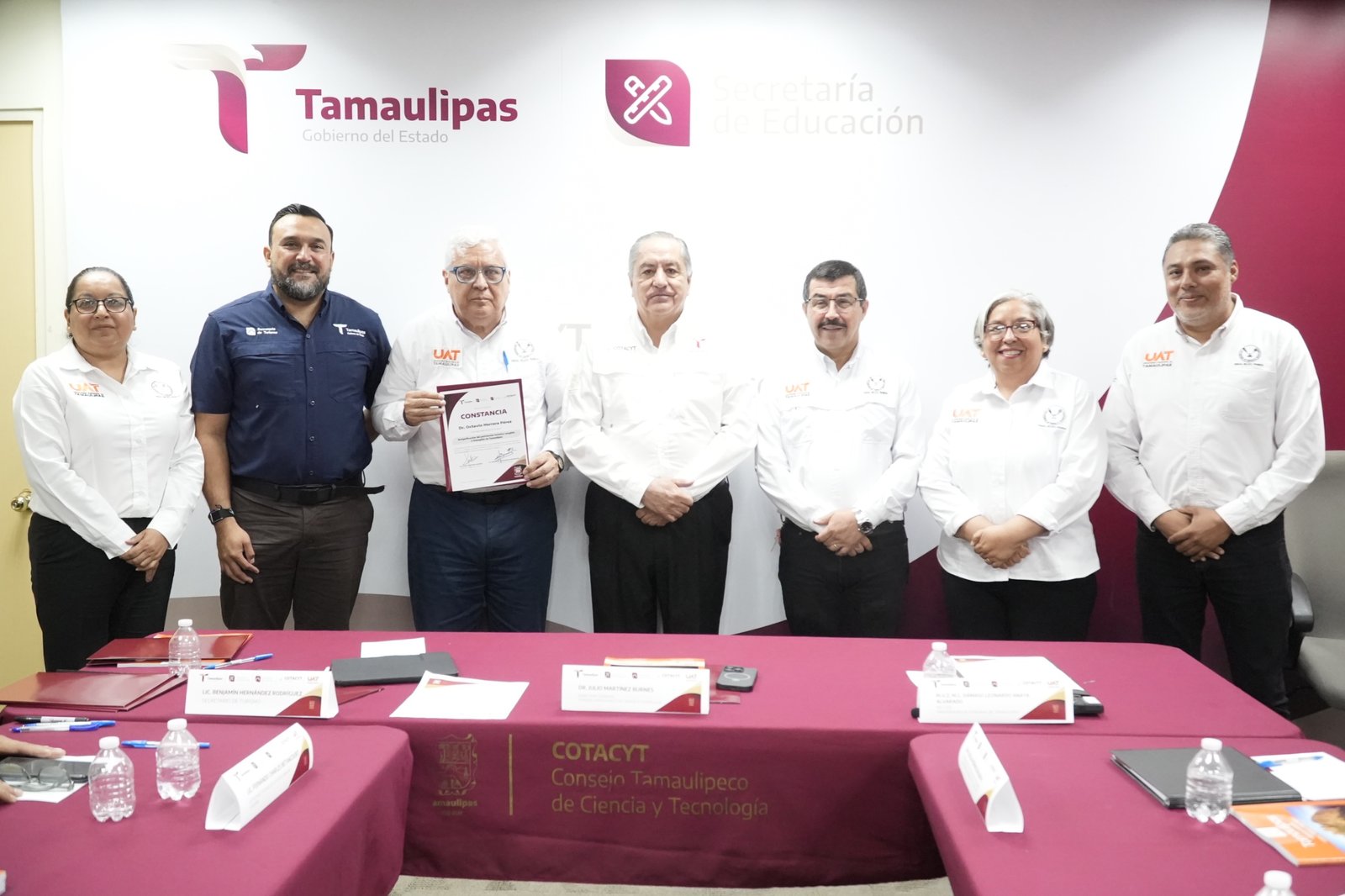 En una muestra del compromiso con la investigación aplicada y la vinculación institucional, el rector de la Universidad Autónoma de Tamaulipas (UAT) Dámaso Anaya Alvarado encabezó junto con el secretario de Turismo de Tamaulipas, Benjamín Hernández Rodríguez, y el director general del Consejo Tamaulipeco de Ciencia y Tecnología (COTACYT), Julio Martínez Burnes, la presentación y entrega de resultados finales del proyecto “Resignificación del patrimonio turístico tangible e intangible de Tamaulipas”.