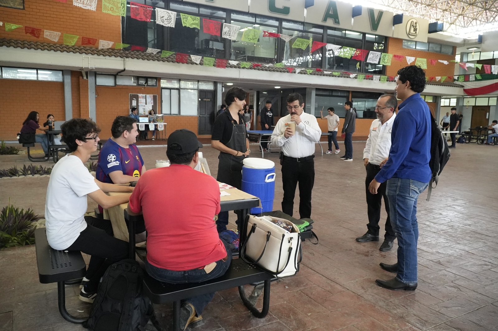 A su llegada, el rector fue recibido por el director de la FCAV, Jesús Gerardo Delgado Rivas, iniciando una jornada en donde compartió con las y los jóvenes un diálogo abierto y constructivo que permitió atender inquietudes y reconocer las iniciativas que impulsan desde los ámbitos académico, cultural, deportivo y de emprendimiento.