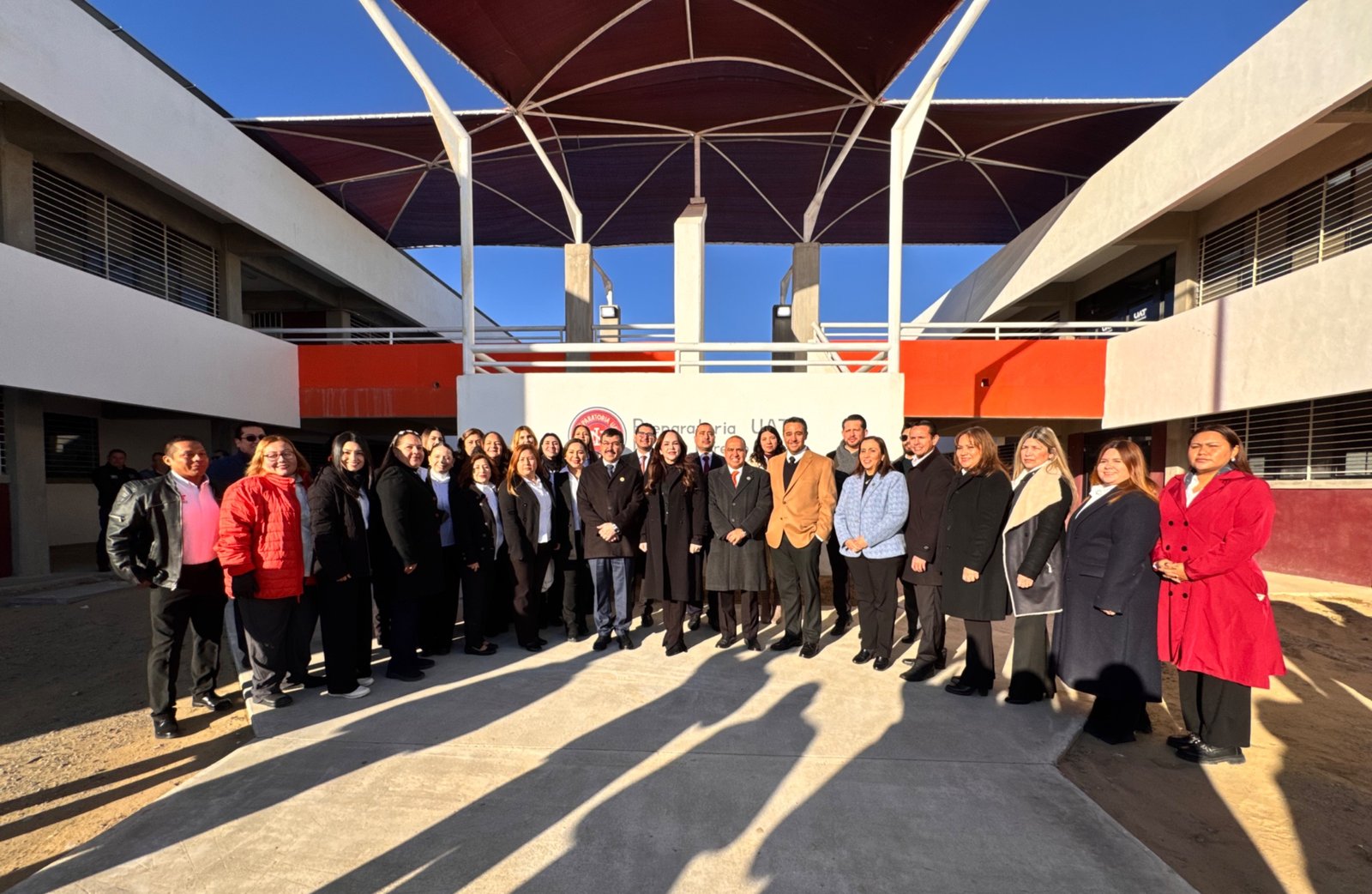 La entrega, realizada en el marco de apertura del ciclo escolar 2026-1 de la UAT, incluyó la techumbre monumental, diseñada para proteger a los estudiantes de las inclemencias del tiempo durante sus actividades al aire libre; así como el estacionamiento, destinado a mejorar la movilidad y el orden dentro del plantel.